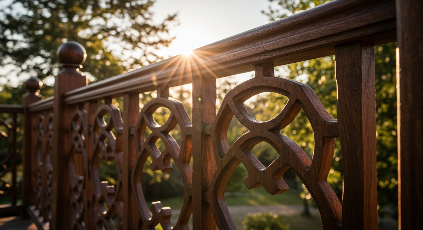 Ручная резьба превращает перила в уникальный декоративный элемент интерьера