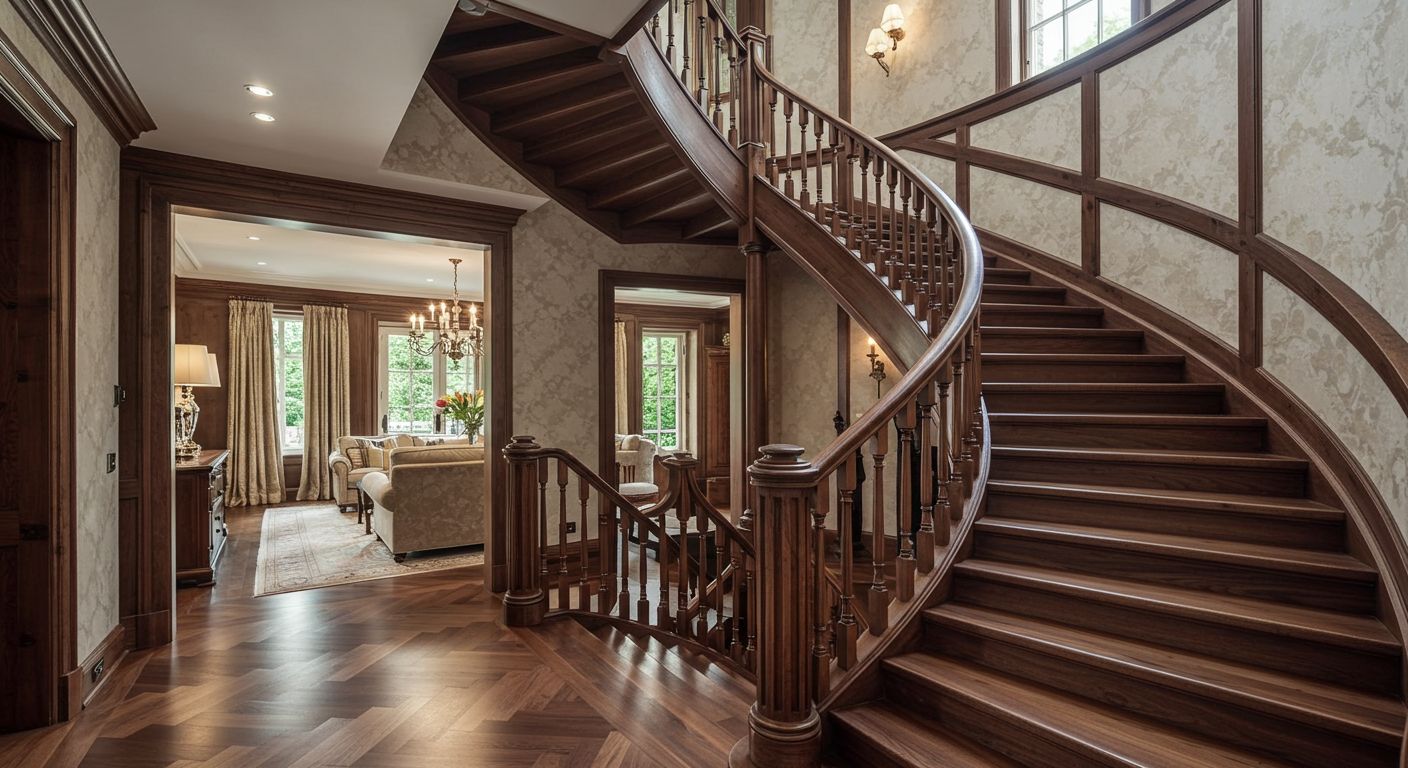 Ореховая древесина ценится за её уникальное сочетание прочности и красоты. Лестницы из ореха отличаются высокой устойчивостью к нагрузкам, долговечностью и износостойкостью, что особенно важно для элитных интерьеров с интенсивным использованием. Природный рисунок древесины делает каждую лестницу уникальной, а глубокие коричневые оттенки создают атмосферу тепла и роскоши. Кроме того, орех легко поддаётся ручной обработке, позволяя мастерам воплощать сложные дизайнерские решения и декоративные элементы, которые подчеркнут индивидуальность дома.