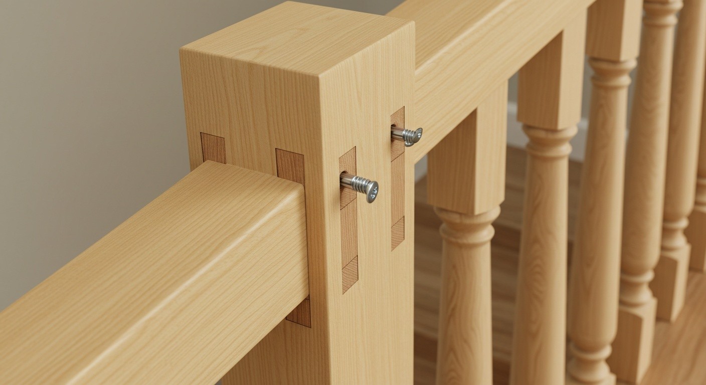 - Шканты и вставные отверстия — классический способ, при котором в балясине и ступени просверливаются отверстия, и соединение фиксируется деревянными шкантами с клеем.