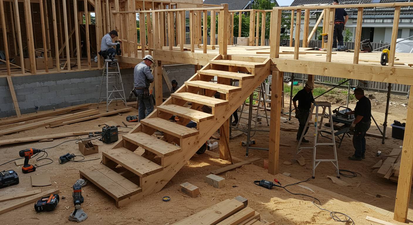 На сроки сборки деревянной лестницы влияют сразу несколько факторов, которые необходимо учитывать при планировании. Во-первых, это тип лестницы: прямая, винтовая, модульная или комбинированная. Прямая лестница монтируется быстрее всего благодаря минимальному количеству соединений и простоте конструкции. Винтовые и криволинейные лестницы требуют более точной подгонки элементов, что увеличивает время установки. Во-вторых, материал играет важную роль: твердые породы древесины, такие как дуб или орех, требуют аккуратного обращения и точной подгонки деталей, тогда как более мягкие породы, например сосна или береза, монтируются быстрее.