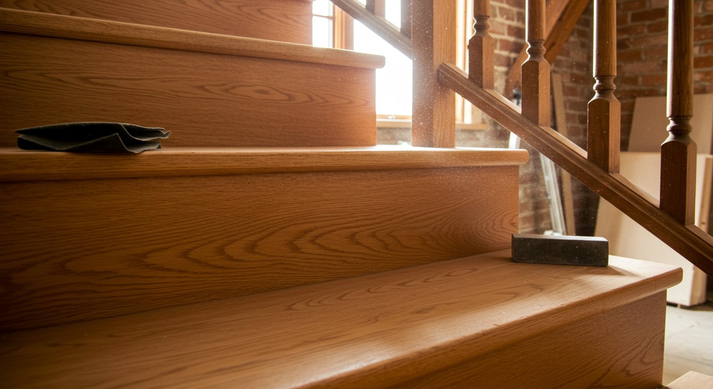 Особое внимание уделяется углам и ребрам ступеней, а также местам соединений с поручнями и косоурами. Здесь часто применяют ручную шлифовку с помощью шлифовальных блоков, чтобы сохранить форму и аккуратный вид. После завершения шлифовки поверхность тщательно очищают от пыли и стружки, чтобы последующая отделка ложилась равномерно и долговечно.