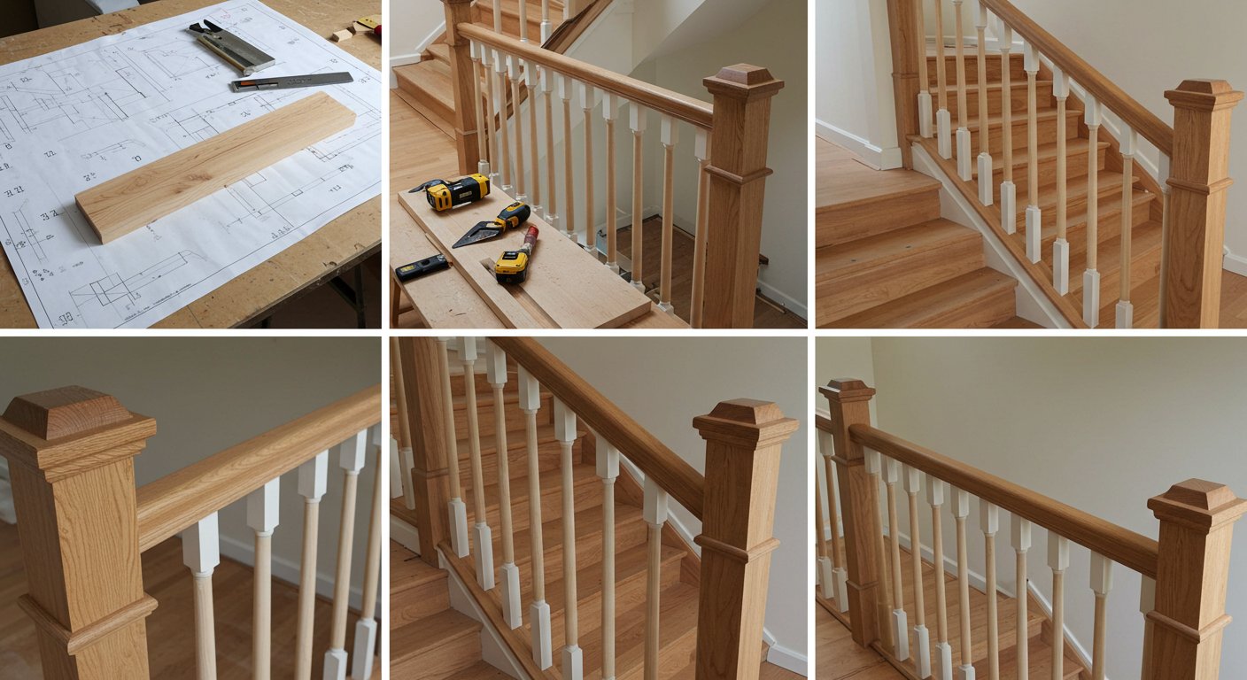 Этапы изготовления лестничных перил из дерева