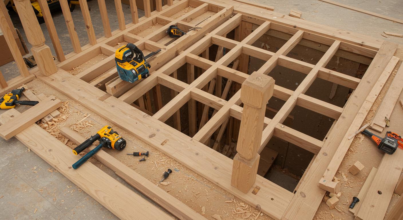 Монтаж деревянной лестницы выполняется в несколько этапов. Первый шаг — подготовка проема и разметка. Необходимо проверить горизонтальность и вертикальность всех поверхностей, где будут крепиться косоуры или тетивы. Второй шаг — установка основных несущих элементов. Косоуры закрепляются с помощью металлических крепежей и анкеров, что обеспечивает устойчивость всей конструкции.