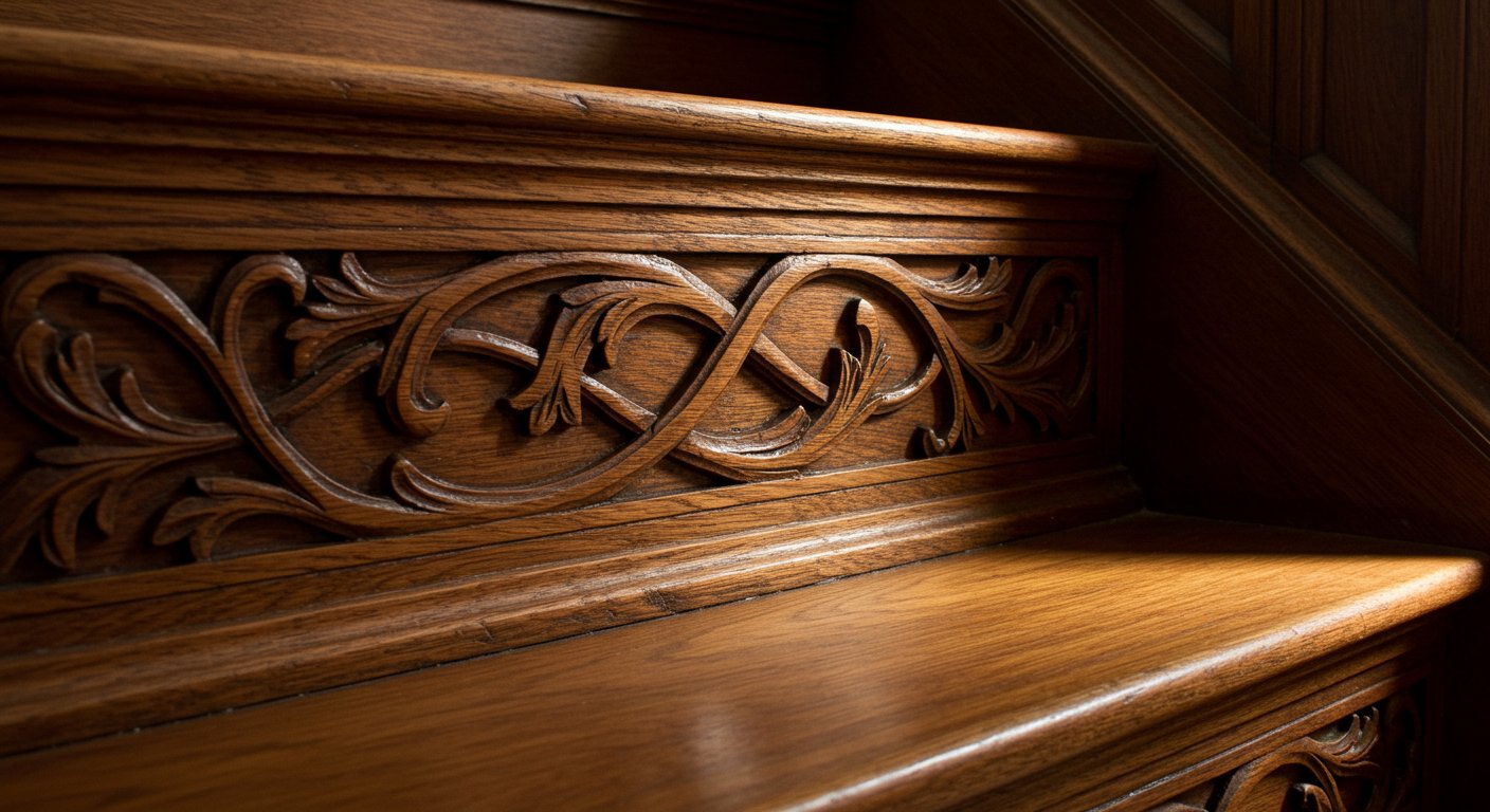 Существует несколько основных типов резьбы, которые применяются при оформлении лестниц. Простая линейная резьба подходит для современных интерьеров и минималистичных решений — она подчеркивает форму и структуру лестницы, не перегружая дизайн. Рельефная и глубинная резьба позволяет создавать сложные орнаменты и узоры, которые становятся главным декоративным элементом интерьера. Филигранная резьба используется для создания ажурных перил и балясин, добавляя легкость и изысканность конструкции. Каждый тип резьбы требует точности исполнения и умения работать с материалом, чтобы сохранить прочность элементов.